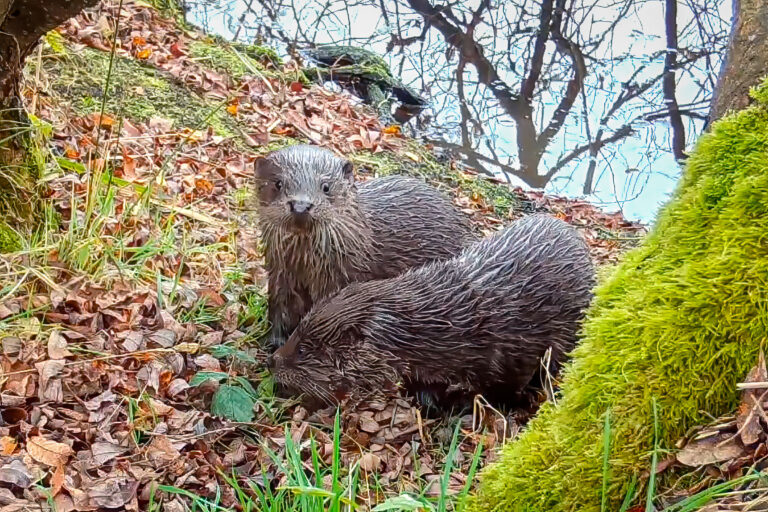 Otter cubs are already leaving their own scent marks and sniffing others’ by the time they first appear on the cameras at three or four months of age. The first video, from late 2024, shows two young otter cubs exploring their world, much more interested in the scents than the sights or sounds.