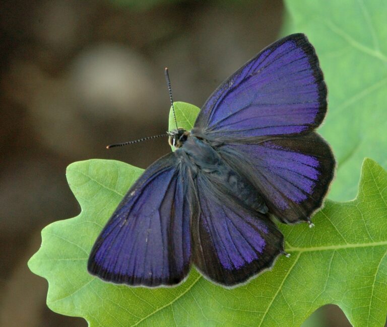 An elusive butterfly, the oak specialist Purple Hairstreak spends most of its life high up in the oak canopy.